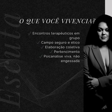 Um espaço contínuo de elaboração psíquica, pertencimento e pensamento profundo — sem a rigidez da clínica tradicional.